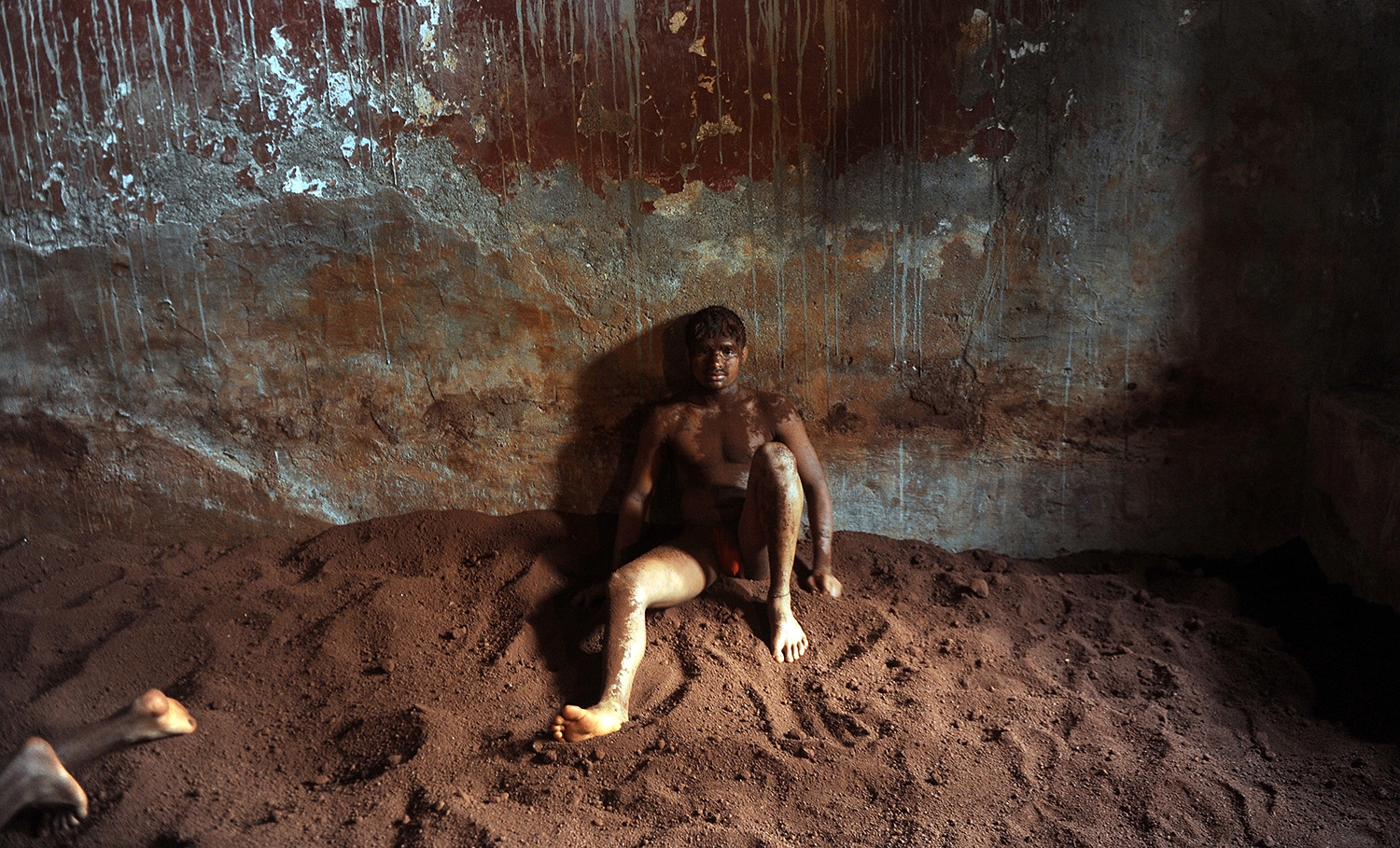 Kushti wrestlers ( or "pehlwans") work out in traditional gyms and training centres known as "akhara". Most akhara these days use modern gym mats, but those with mud and dirt floors still exist.