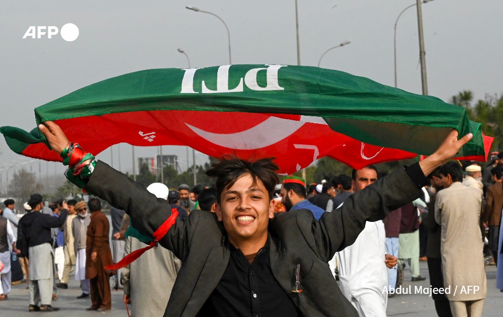 Supporters of Khan's Pakistan Tehreek-e-Insaf (PTI) party block the Peshawar to Islamabad highway as they protest against the alleged skewing in the national election results. Peshawar on February 12, 2024.