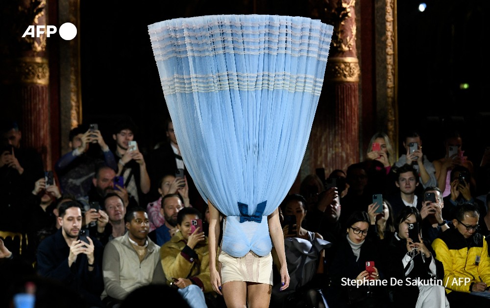 A model presents a creation for Viktor & Rolf during the Haute-Couture Spring-Summer 2023 Fashion Week in Paris on January 25, 2023.