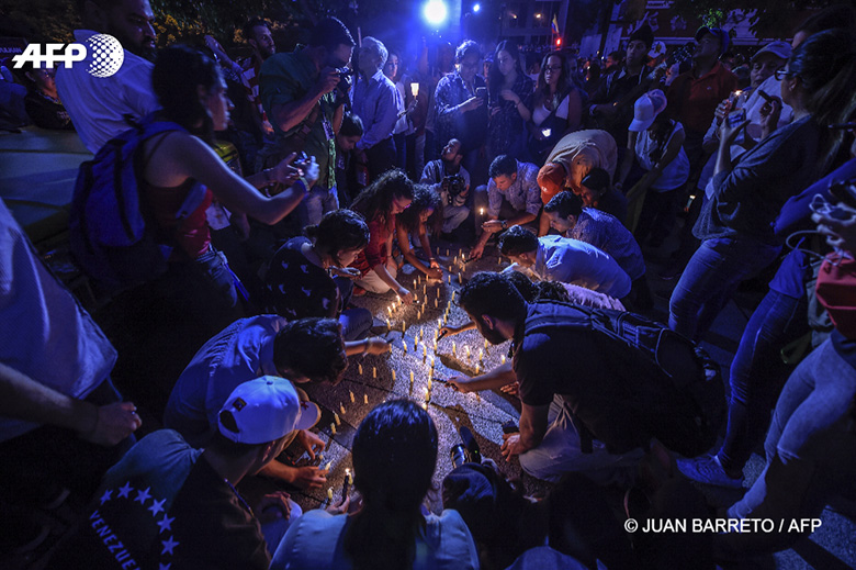 17 mai 2017 - Venezuela, Caracas - Des opposants au régime vénézuélien disposent des bougies pour protester contre la mort de 43 personnes lors des affrontements avec la police après des semaines de manifestations contre le gouvernement de Nicolas Maduro. © JUAN BARRETO / AFP PHOTO